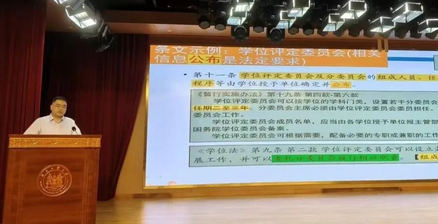 此次培训会是学校贯彻落实《学位法》精神的重要举措,为准确把握学位授予管理及监督等关键环节的法律标准和要求奠定了坚实基础。学校将以此次培训为契机,进一步规范学位授予工作,完善学位质量保障体系,推动研究生教育高质量发展,为服务国家战略需求和地方经济社会发展培养更多优秀人才。